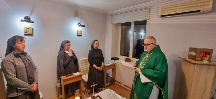 Le FMA della Comunità di Kyiv, insieme all’Ispettrice, suor Malgorzata Pietruszczak, si sono ritrovate intorno all’altare della cappellina della loro Casa per l’Eucarestia, celebrata dal parroco don Marek Gramotka, carmelitano, con la forte intenzione della pace in Ucraina.