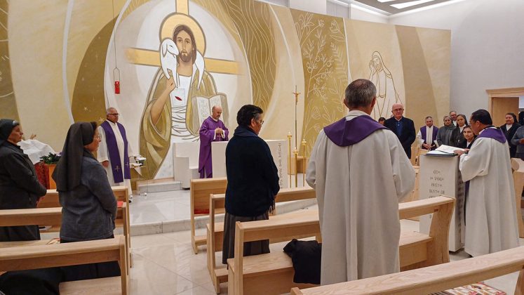 Después de un breve momento de convivencia, los hermanos, divididos en pequeños grupos, acompañaron a las hermanas en una visita a los ambientes renovados de la nueva sede. El clima de sencillez y espontaneidad continuó durante la celebración eucarística en la nueva capilla del Buen Pastor, presidida por Don Stefano que, después de la homilía, invitó a los presentes a compartir la Palabra de Dios y las intenciones de oración.