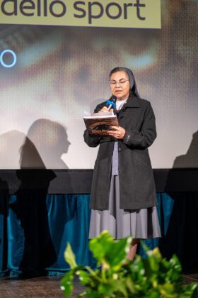 Sur scène se sont exprimés Ciro Bisogno, président de PGS et coordinateur des organismes de promotion sportive du CONI ; sœur Mara Tagliaferri, présidente du CIOFS ; et sœur Nilza Fátima de Moraes , Conseillère générale pour la formation de l’Institut FMA ; le Père Francesco Preite , président des Salésiens pour le travail social et représentant national du CNOS pour le PGS ; le Père Francesco Motto, directeur de l’Association des historiens salésiens, et d’autres personnalités étaient présents. Étaient également présents : Rossana Ciuffetti (directrice de Sport Impact – Sport et Santé), Donatella Minelli (directrice de l’École des sports), sœur Francesca Scibetta (représentante nationale des FMA pour le PGS) et le Père José Miguel Cardoso (responsable du Dicastère pour la culture et l’éducation et chef du secteur sportif).