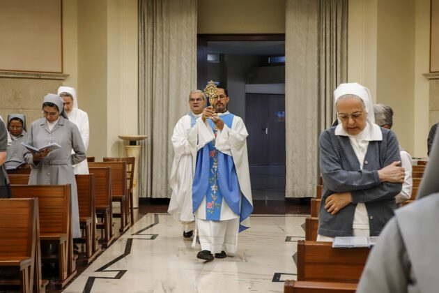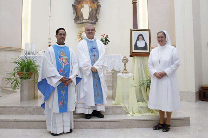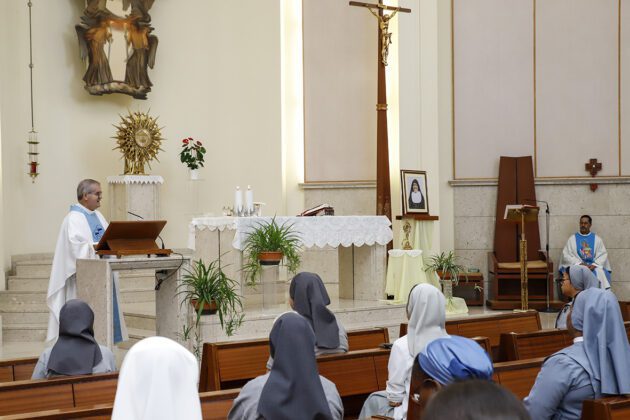 Rome (Italie). Le 24 septembre 2025, la communauté Marie Auxiliatrice de la Maison générale, avec la Supérieure générale de l’Institut des Filles de Marie Auxiliatrice, Mère Chiara Cazzuola, et les conseillères présentes, a vécu de manière tout à fait spéciale la fête mensuelle de Marie Auxiliatrice avec la célébration eucharistique présidée par le postulateur des causes des saints de la Famille Salésienne, don Pierluigi Cameroni, et concélébrée par don Gabriel de Jesús Cruz Trejo, son collaborateur qui, en prévision de la canonisation désormais imminente (le 19 octobre 2025), ont apporté le reliquaire contenant une précieuse relique de sœur Maria Troncatti.