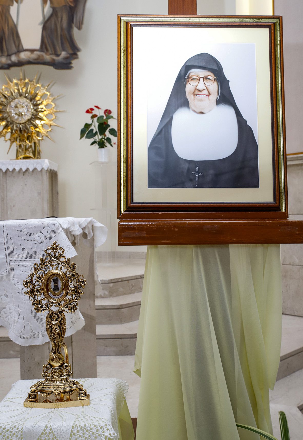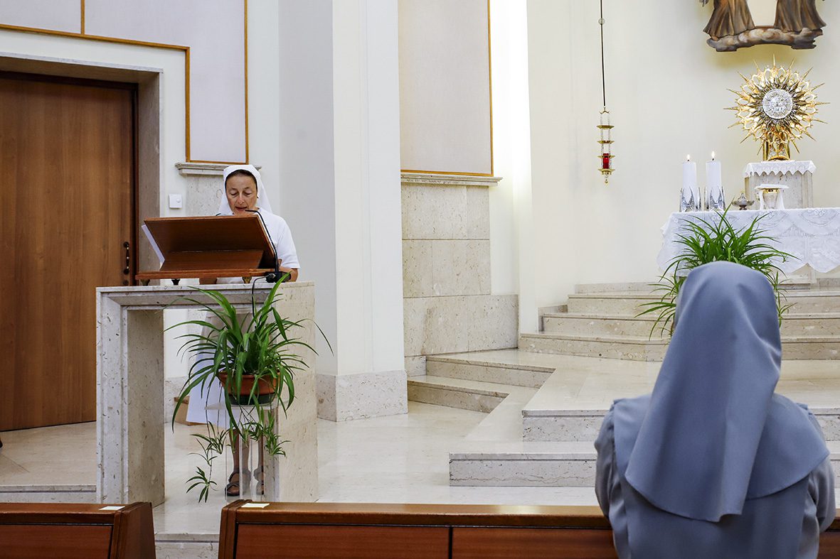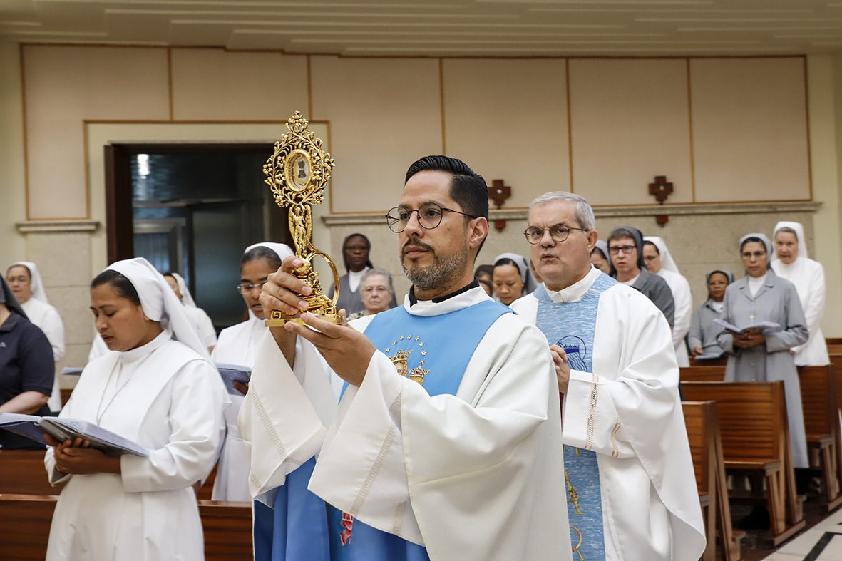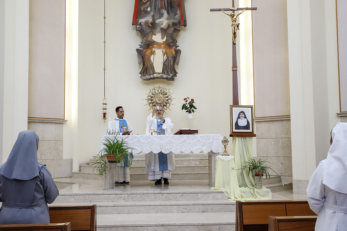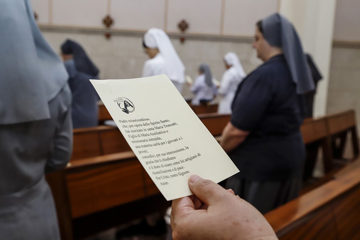 Sœur Maria Luisa Nicastro, secrétaire générale, a ainsi introduit ce moment : « En accueillant la relique de sœur Maria Troncatti, nous reconnaissons et louons l’action de la grâce qui a fait d’elle une prolongation de l’amour miséricordieux du Christ. Aujourd’hui encore, elle se rend présente pour guérir, consoler et envoyer. En communion avec l’Institut et avec l’intercession de sœur Maria Troncatti, bientôt sainte, nous confions la paix, ceux qui souffrent dans leur corps et dans leur esprit, ainsi que la sainteté de chacune d’entre nous et de l’Institut. »