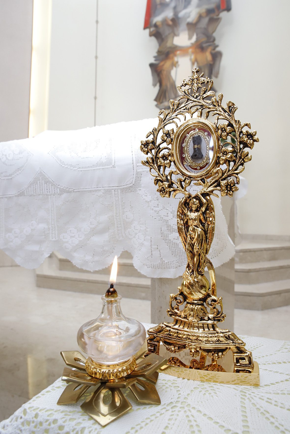 La relique est une phalange de la main de sœur Maria. Dans son homélie, reprenant la Parole de Dieu du jour, don Pierluigi a partagé la valeur symbolique des mains de cette grande missionnaire.