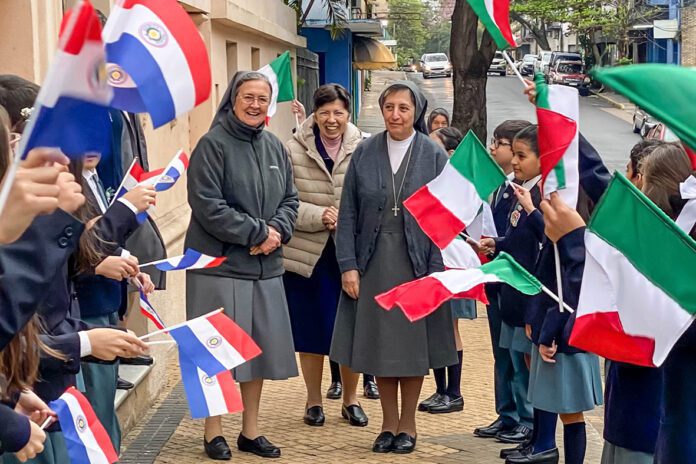 Asunción (Paraguay). Dal 31 agosto al 6 settembre 2025 – dopo la Verifica Triennale CICSAL-CIB, tenutasi a San Lorenzo dal 26 al 30 agosto – la Superiora Generale dell’Istituto delle Figlie di Maria Ausiliatrice, Madre Chiara Cazzuola, ha fatto una Visita breve all’Ispettoria San Raffaele Arcangelo (PAR), che celebra il 125° anniversario di presenza delle Figlie di Maria Ausiliatrice in Paraguay.