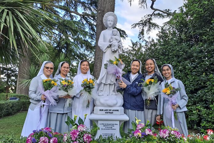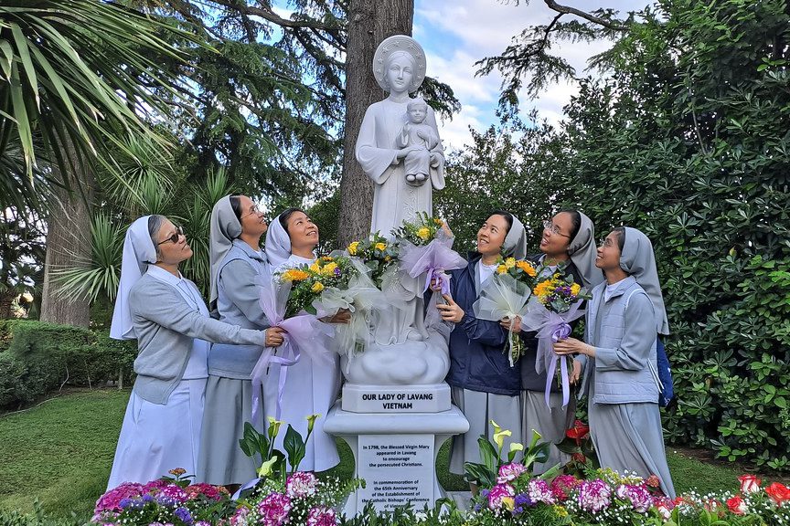 Roma (Italia). Il 24 maggio 2025, nel giorno della Solennità di Maria Ausiliatrice, alcune Figlie di Maria Ausiliatrice vietnamite presenti a Roma hanno avuto la possibilità di unirsi a 200 tra religiosi e laici per pregare davanti alla statua della Madonna vietnamita di La Vang, nei Giardini Vaticani.