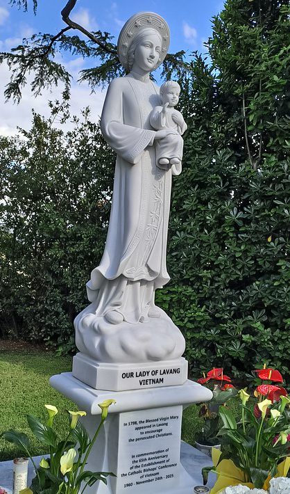 La statua è stata benedetta il 29 aprile 2025, in una cerimonia presieduta dall’Arcivescovo di Saigon Giuseppe Nguyễn Năng, presidente della Conferenza episcopale vietnamita, che durante la cerimonia aveva detto: “Attraverso la presenza di questa statua della Madonna di La Vang confidiamo che la Vergine protegga il Santo Padre e chiunque passi di qui. Crediamo che la Madonna qui intercederà anche per tutte le comunità della Chiesa vietnamita ovunque si trovino”.