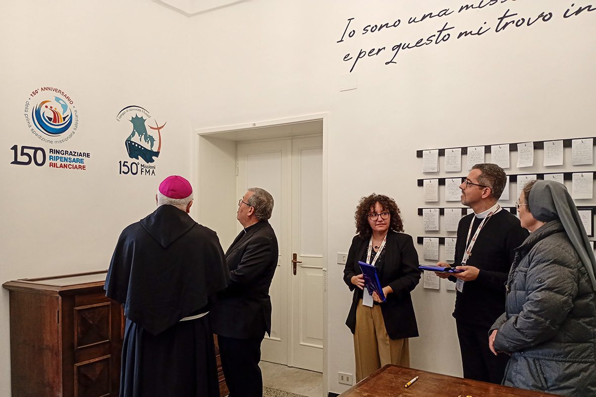 Insieme a varie autorità civili, a benedire i locali del Museo – ideato e realizzato da don Francesco De Ruvo, SDB dell’Italia Centrale, insieme all’architetto Valentina Calabrese – era presente Mons. Marco Tasca, Arcivescovo metropolita di Genova, mentre la Madre e il Rettor Maggiore, come gesto, hanno lasciato un augurio scritto, appeso successivamente a una delle pareti.