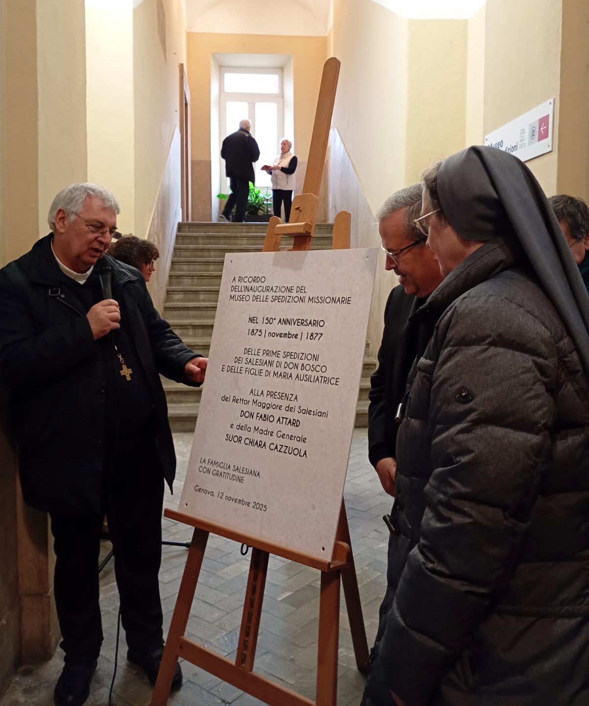 Genova (Italia). Il 12 novembre 2025, nell’ambito delle celebrazioni del 150° anniversario della Prima spedizione missionaria Salesiana (11 novembre 1875) il Rettor Maggiore, Don Fabio Attard, la Madre Generale dell’Istituto delle Figlie di Maria Ausiliatrice, Suor Chiara Cazzuola, la Consigliera generale per le Missioni, suor Ruth del Pilar Mora, il Consigliere generale per le Missioni, don George Crisafulli, tutti gli animatori missionari del mondo, i missionari e le missionarie che hanno ricevuto il crocifisso missionario l’11 novembre, alcuni Ispettori d’Italia, l’Ispettrice dell’Ispettoria Madonna del Cenacolo (ILS) e diversi membri della Famiglia Salesiana sono giunti a Genova, partendo da Torino, per la commemorazione della prima partenza dal porto e l’inaugurazione del Museo delle Spedizioni Missionarie.