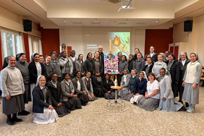 Roma (Italia). Il 30 marzo 2026 a Roma, presso la Casa Generalizia delle Suore Francescane Angeline, 36 Figlie di Maria Ausiliatrice dai 7 ai 10 anni di Professione religiosa della Visitatoria Maria Madre della Chiesa (RMC), accompagnate dalla Superiora di Visitatoria, suor Jessica Salvaña, e dalla responsabile della formazione, suor Anna Trotti, hanno vissuto una giornata formativa.