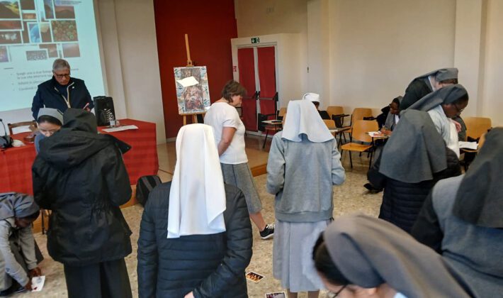 L’incontro è iniziato con un momento dedicato all’interiorità, in cui ciascuna ha scelto un’immagine capace di rappresentare la propria vita interiore. Il silenzio e la contemplazione hanno permesso di riconoscere ciò che oggi alimenta il fuoco vocazionale e ciò che invece rischia di spegnerlo. La riflessione personale ha portato a interrogarsi su ciò che nutre la vita interiore, sulle difficoltà nel custodire il fuoco e sui momenti in cui la vocazione si fa più viva. La condivisione in piccoli gruppi ha aiutato a dare nome a ciò che spesso si fatica ad esprimere: fragilità, dubbi, desideri profondi…