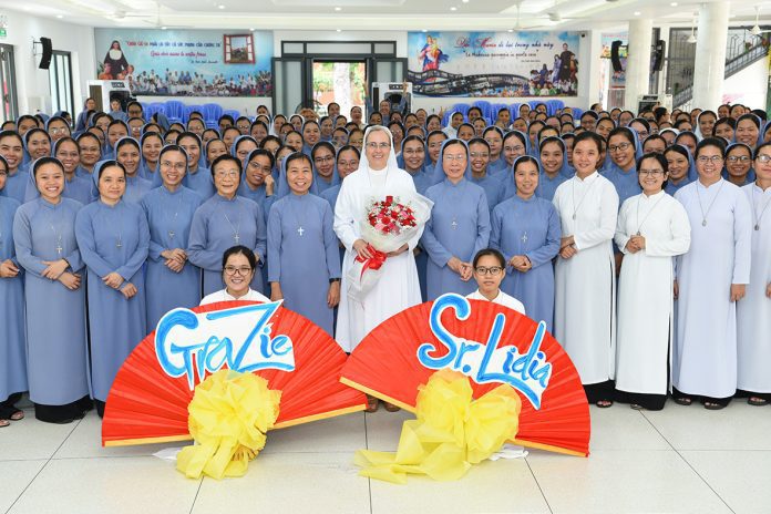 Dopo la Messa, nello spirito di famiglia e con danze e canti tipici della cultura vietnamita, le sorelle hanno accolto con gioia suor Lidia, introdotta dal discorso di benvenuta dell’Ispettrice, suor Maria Hoang Thi Thu Ha. Successivamente, suor Maria Hoang Ngoc Yen, Consigliera ispettoriale, ha fatto una breve presentazione del Paese e dell’Ispettoria del Vietnam.