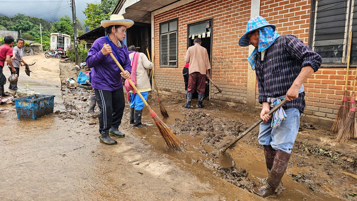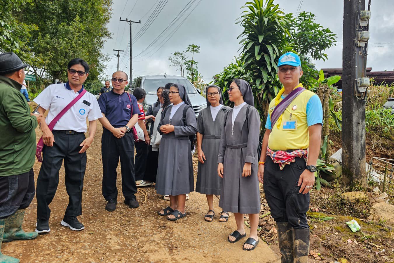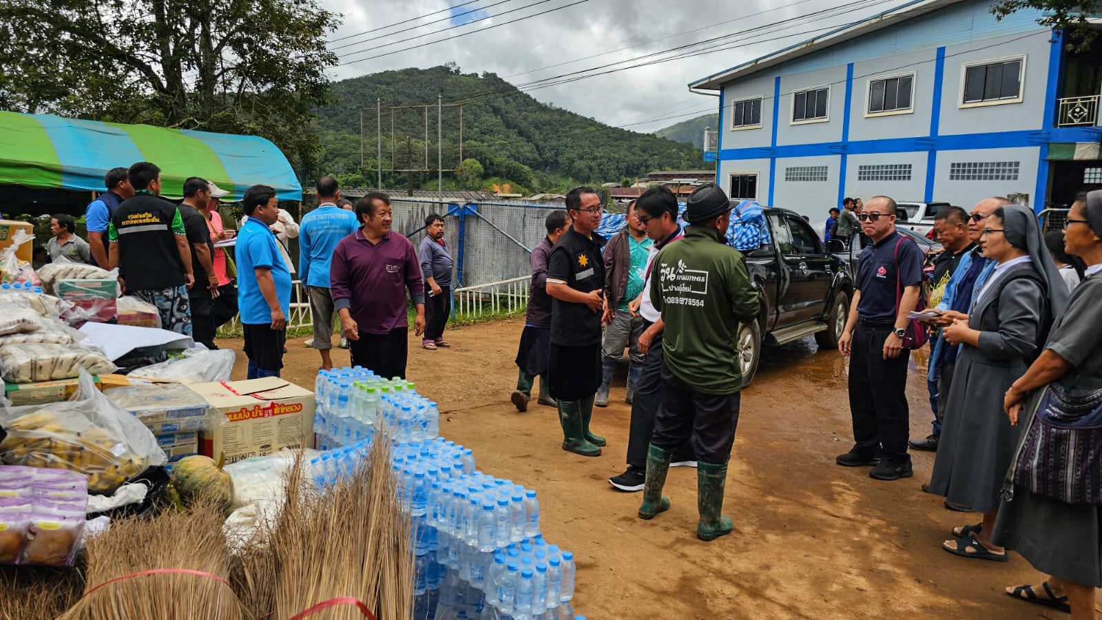 No dia 30 de agosto, as Irmãs Salesianas, juntamente com cinco estudantes do grupo Thida Rak que vivem e estudam na Comunidade São José, cujas famílias estão entre as pessoas atingidas pelo desastre em Ban Pang Ung, chegaram às zonas devastadas junto aos Padres Betharramitas e aos sacerdotes da Diocese de Chiang Mai. Apesar das dificuldades no transporte – um caminhão quebrou e outro não conseguiu subir os trechos mais íngremes da estrada – a missão foi bem-sucedida e conseguiram transferir as cargas e distribuir ajudas no ambulatório do vilarejo, na escola e na igreja de São João Batista, coração da comunidade católica local.