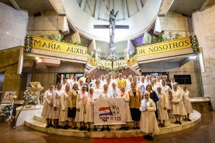 Assunção (Paraguai). No dia 29 de abril de 2025, no Santuário Maria Auxiliadora de Assunção, as Filhas de Maria Auxiliadora, junto aos jovens, leigos e à Família Salesiana, viveram um dia rico de emoção e fé na celebração dos 125 anos da chegada das primeiras nove FMA, que, com grande fervor e espírito apostólico, chegaram ao Paraguai em 30 de abril de 1900 para se dedicar à educação das crianças.