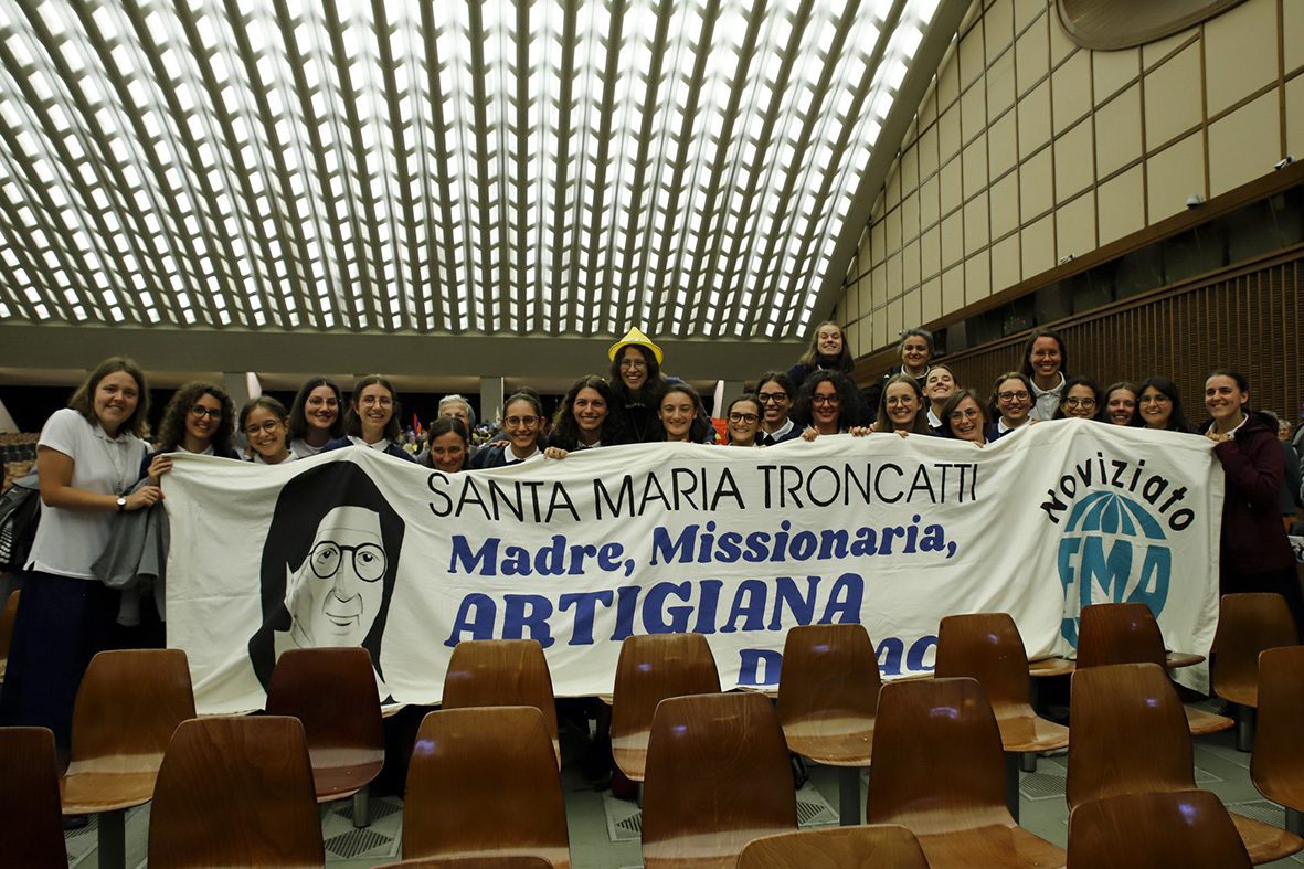 Os chapéus coloridos com a inscrição “Santa Maria Troncatti, rogai por nós” e as bolsas com o logotipo, mas sobretudo a alegria salesiana vivida plenamente num evento tão importante para o Instituto das FMA e para toda a Família Salesiana, caracterizaram o grupo composto por Madre Chiara Cazzuola e o Conselho Geral, pela Madre Geral emérita, Irmã Yvonne Reungoat, das noviças, pelas FMA da Casa Geral, das casas de Roma e de várias Inspetorias, pelas Inspetoras, missionárias, jovens do MJS, membros da Família Salesiana, benfeitores, FMA e jovens do Equador, pelo miraculoso Juwa Bosco com sua família e alguns Shuar, pelos parentes de Irmã Maria Troncatti e pelos cidadãos de Corteno Golgi e Brescia.