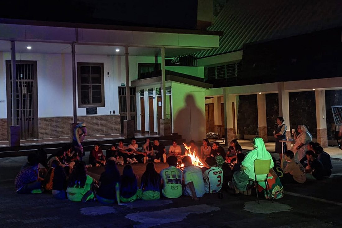 O filme “La llamada” (O chamado) e o debate em torno da fogueira permitiram aos/às participantes compartilhar dúvidas e preocupações e escutar os testemunhos das Filhas de Maria Auxiliadora – irmã Nazareth Espinoza e irmã Kassandra Cruz – que farão os votos perpétuos em 22 de agosto, assim como o testemunho da irmã Alba Rosa Aguilera, que no mesmo dia fará a sua primeira Profissão religiosa como FMA.