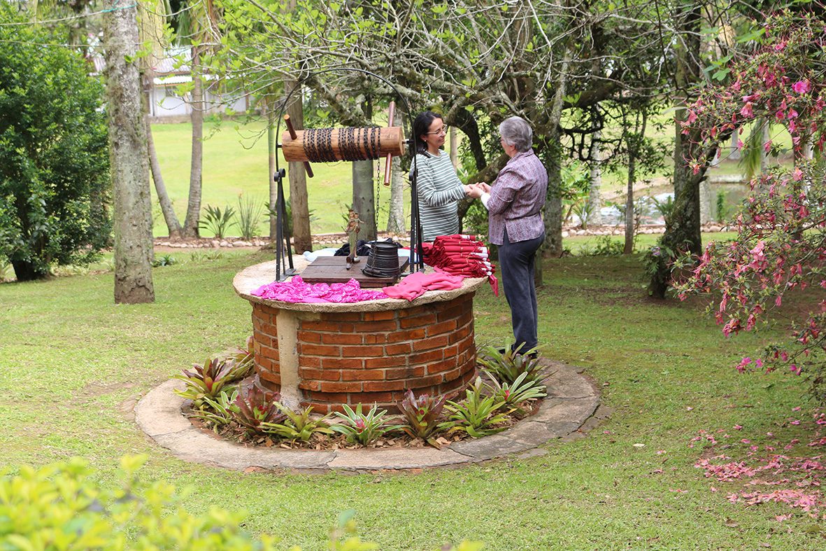 Para encerrar o dia de espiritualidade salesiana, cada um dos presentes aproximou-se individualmente do “poço”, reconstrução do poço de Mornese presente no Sítio Mornese. Ir. Alaíde Deretti acolheu a cada um/a com palavras de confiança e encorajamento e deu um presente/lembrança do 150º aniversário de Fundação do Instituto das FMA.