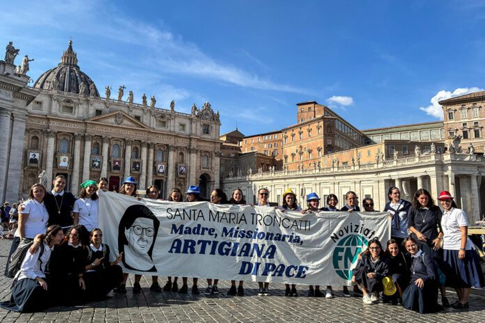 “Como jovens em discernimento e formação, sentimo-nos muito gratas a Deus por poder viver o Noviciado perto de Roma, especialmente neste ano jubilar. Entre os eventos de graça aos quais pudemos estar presentes, está a Canonização de Irmã Maria Troncatti, a primeira FMA declarada santa depois da cofundadora Madre Mazzarello! Participamos de grande parte dos momentos organizados para viver em profundidade, comunhão e alegria este evento. Por isso, queremos partilhar, através das palavras das Noviças, o que significou esta experiência para nós.”