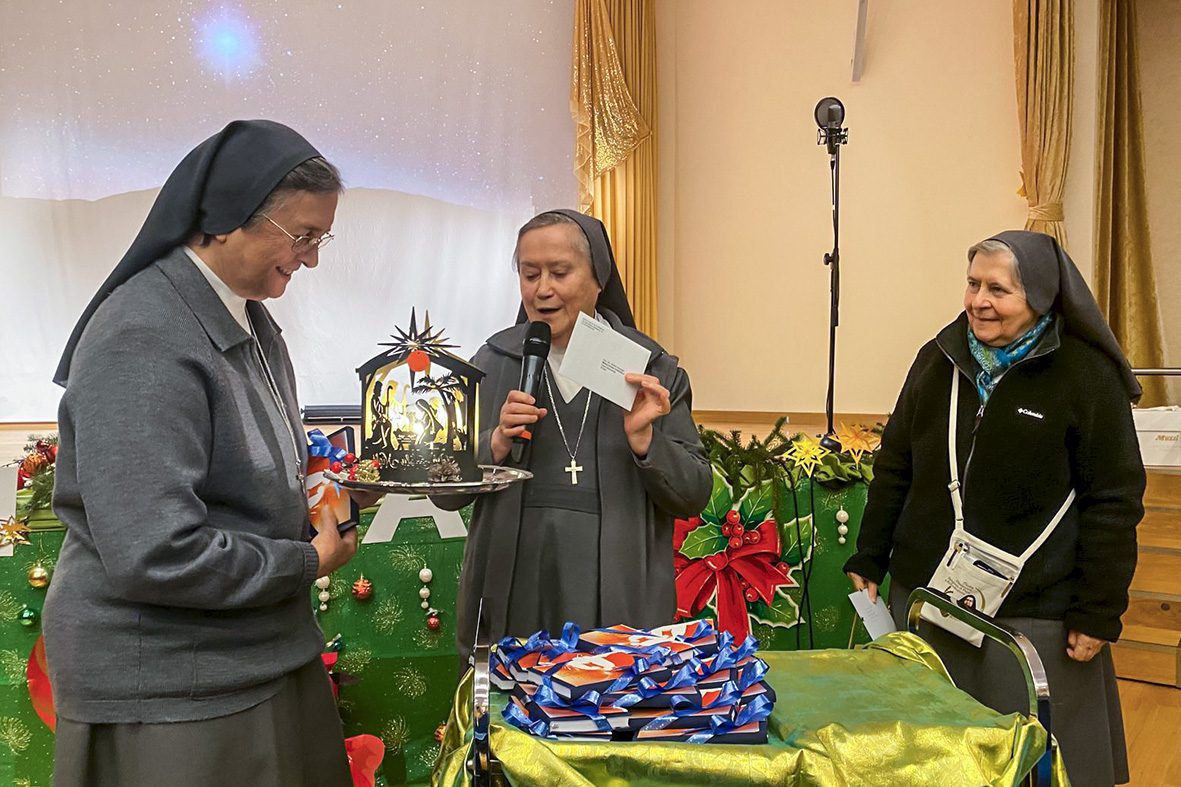 A irmã Antonella Cangiano, por sua vez, ofereceu os dons da própria Comunidade, olhando para os caminhos de paz iniciados com a Comunidade educativa para se preparar para o Natal: “A Estrela que indica o Príncipe da Paz nos ajude a acolher a paz que – como compreendemos com as crianças – começa todos os dias por nós mesmos. Saudações de paz!”.
