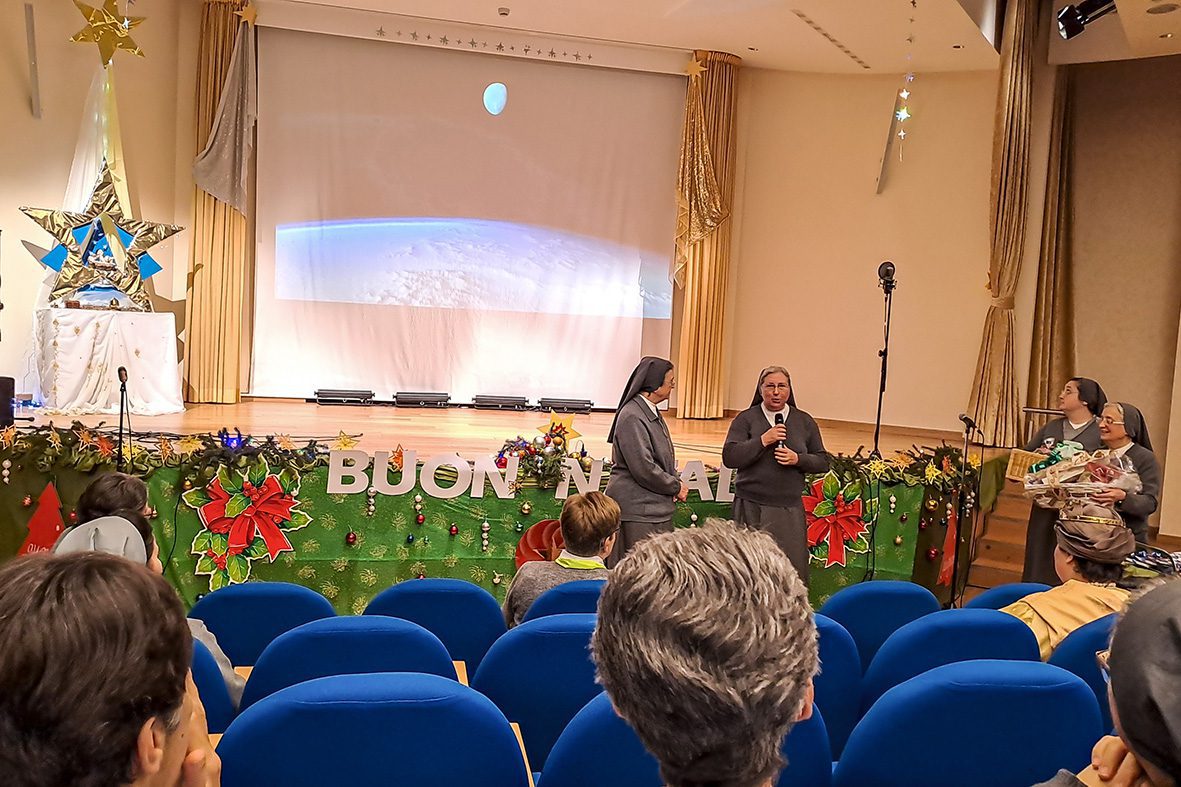 “Esta é a promessa que se realiza no Natal” – continuou a Madre – “uma casa segura. E o mistério do Natal realiza esta promessa: Jesus é para todos casa, aquele que acolhe. É o Senhor que se faz pequeno, menino.”