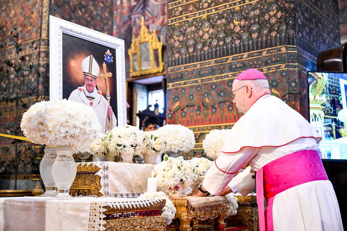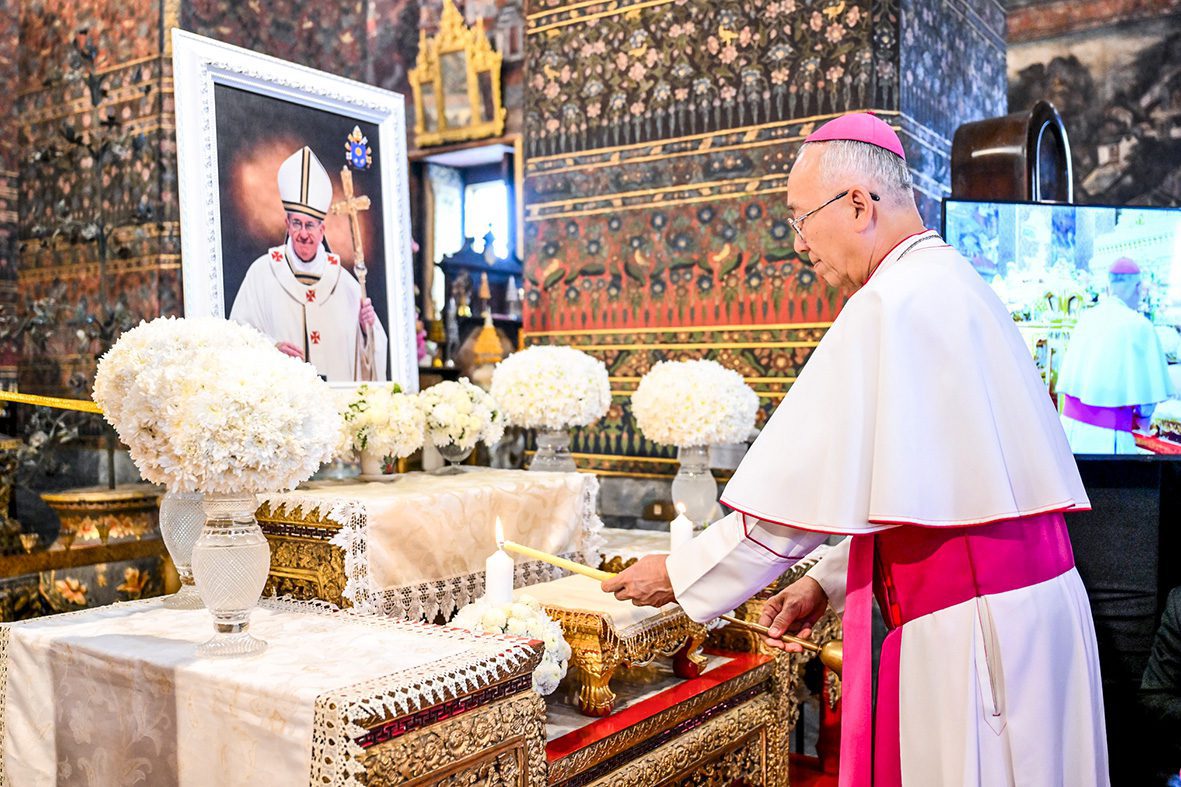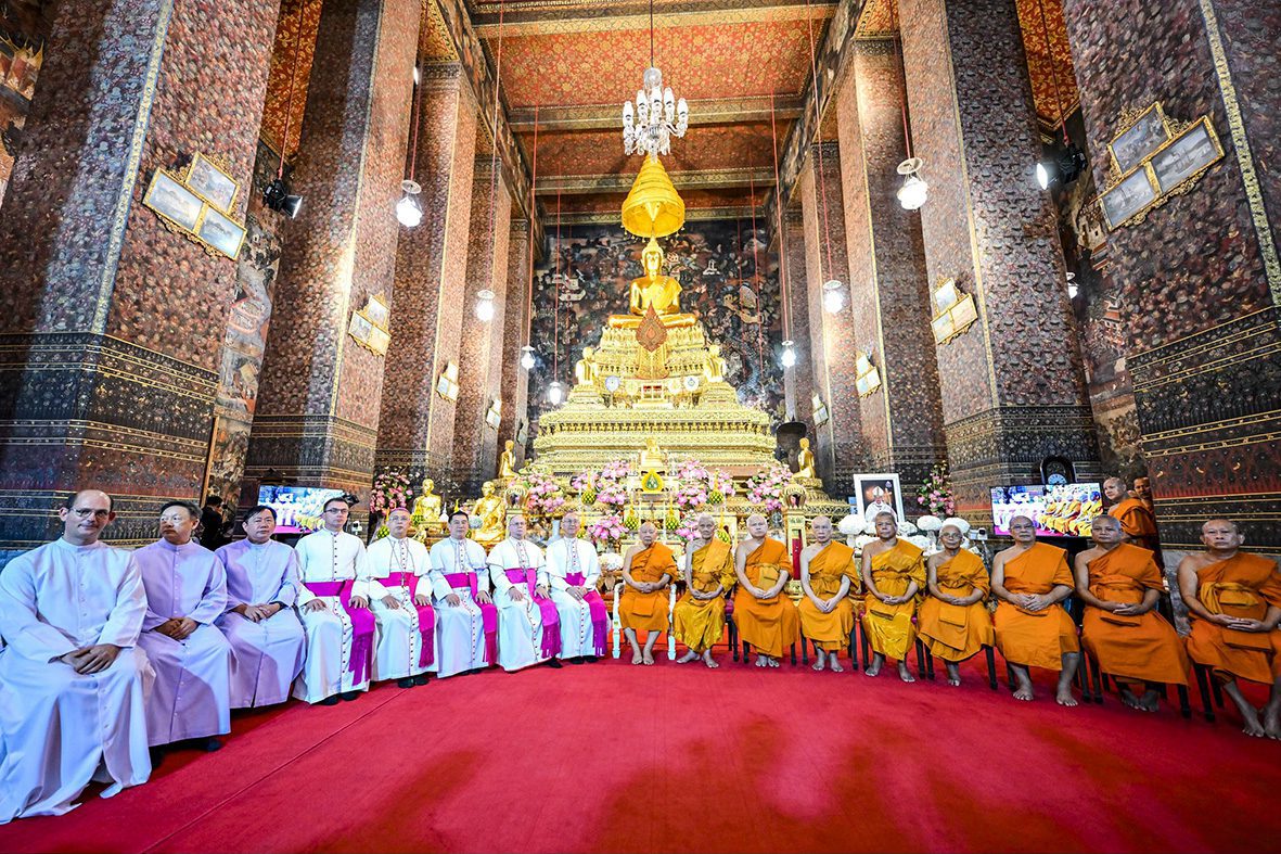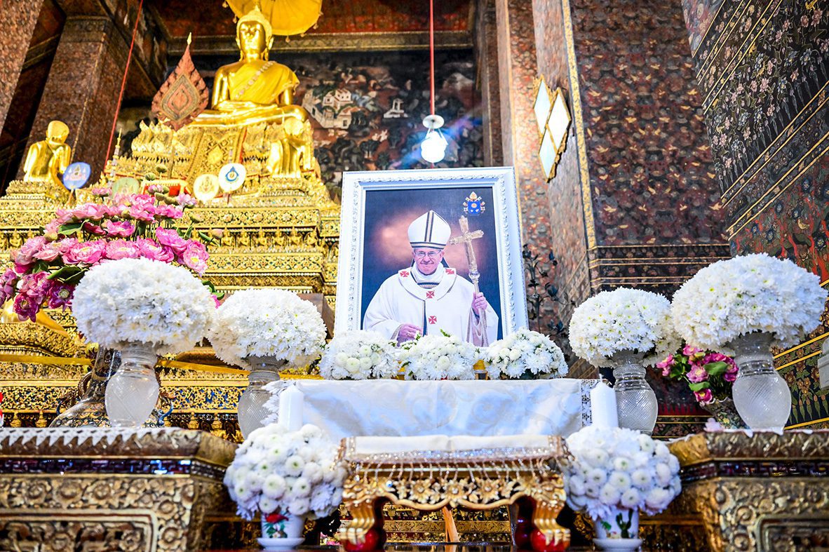 Bangkok (Tailândia). No dia 29 de abril de 2025, em Bangkok, no templo real de Wat Phra Chetuphon Wimonmangklaram, distrito de Phra Nakhon, realizou-se uma oração inter-religiosa em sufrágio do Papa Francisco, falecido em 21 de abril de 2025, promovida pelo Patriarca Supremo do Sangha da Tailândia do Norte, Sua Santidade Somdej Phra Maha Thirachan.