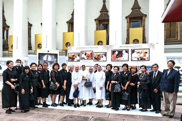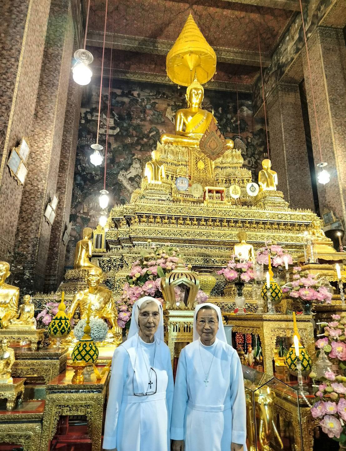 Sob o Ubosot, o interior do templo, dedicado a Buda, ao lado de uma imagem do Papa Francisco decorada com cândidas flores, reuniram-se representantes civis, religiosos e eclesiásticos, incluindo monges budistas e três Filhas de Maria Auxiliadora da Inspetoria Santa Maria Mazzarello (THA), seguindo um rito compartilhado.