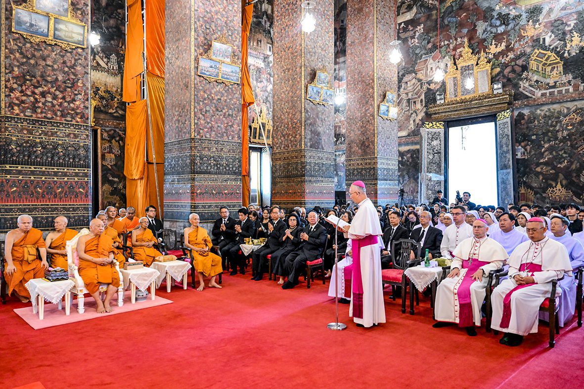 Os presentes escutaram com recolhimento o testemunho de fraternidade religiosa, sinal do contínuo diálogo inter-religioso. Dom Vira Arpornrat expressou sincero agradecimento a Somdej Phra Maha Thirachan pela iniciativa, reconhecendo nela a vontade comum de testemunhar os valores espirituais e humanos encarnados pelo Papa Francisco, compartilhados por ambas as crenças.